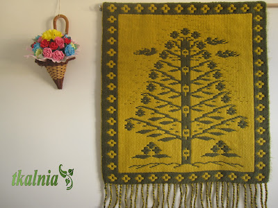 Motyw drzewa jest bardzo częsty na tradycyjnych tkaninach dwuosnowowych. A tu moje utkane drzewka: